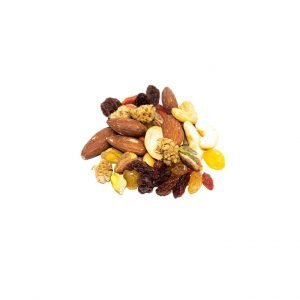 Dry roasted Soybeans* , Pumpkin seeds*, Goji berries*, Almonds with Tamari* [almonds*, soya sauce* (water, soy beans*, sea salt, alcohol*)], Mangoes*, Brazil nuts*, Cranberries* (cranberries*, sugar*, sunflower oil*) *organic